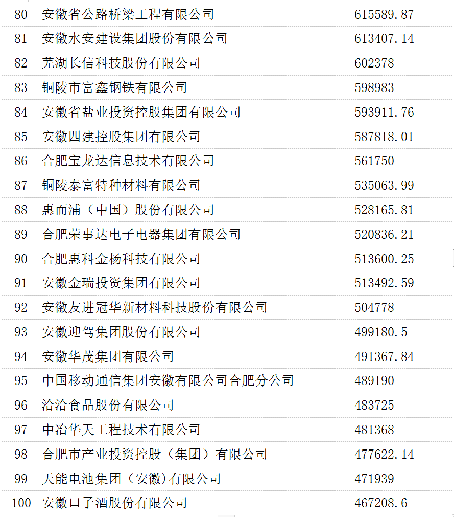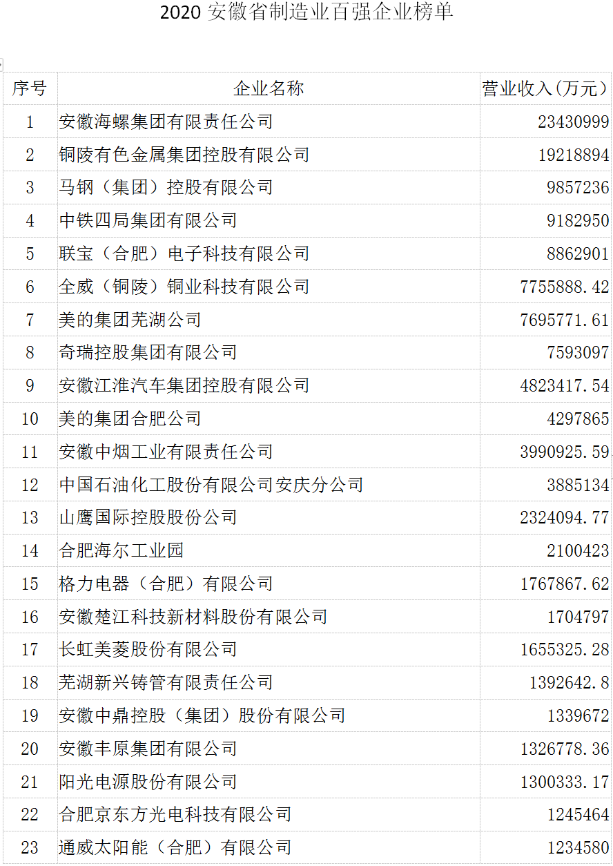 排序顯示,安徽大(dà)企業“鐵三角”格局未變:安徽海螺集團有限責任公司、銅陵有色金屬集團控股有限公司、馬鋼(集團)控股有限公司位列排序前三位。